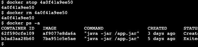 # 기존 컨테이너를 삭제(remove)합니다.