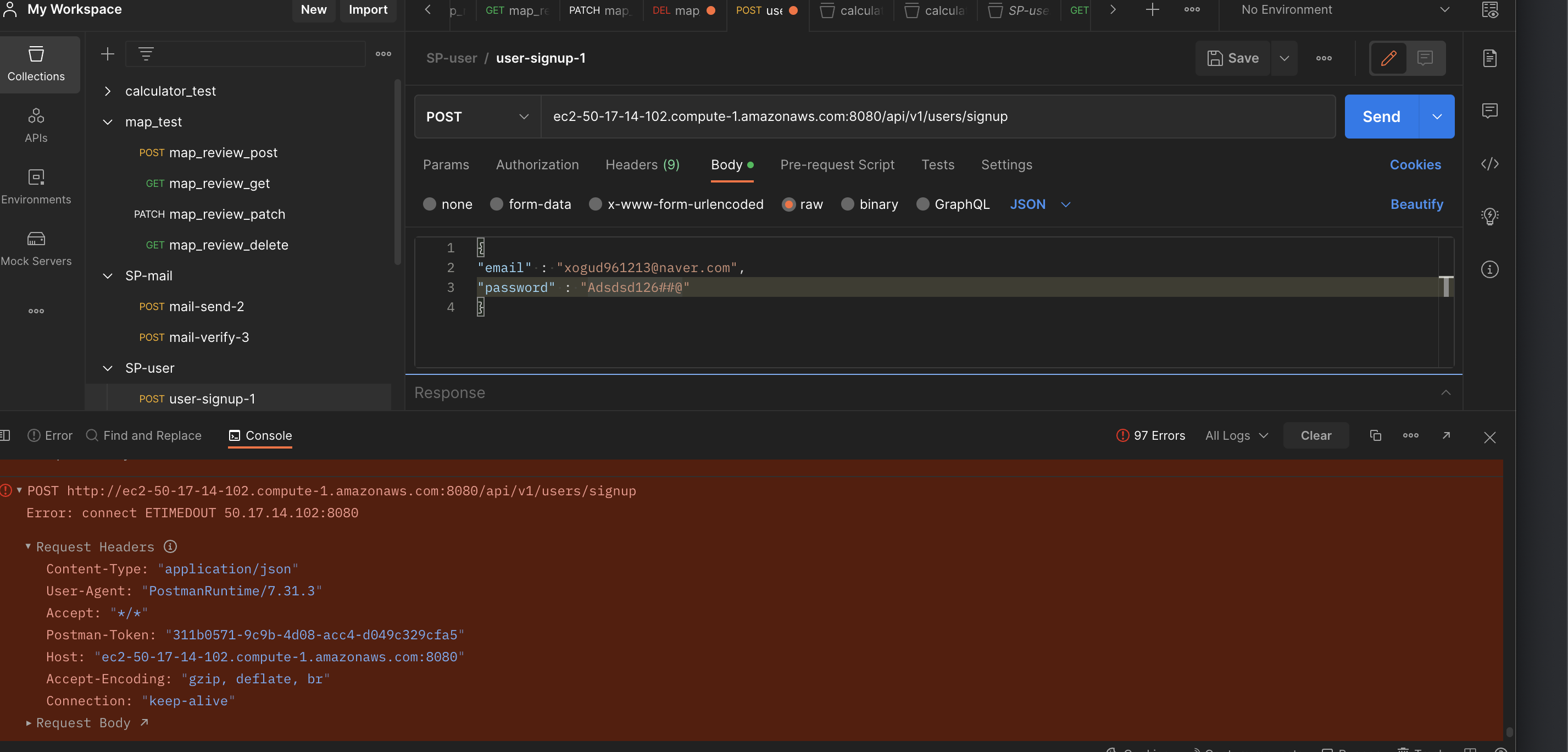 EC2 인스턴스의 퍼블릭 Ipv4 DNS 주소:포트번호 로 api요청을 날렸는데 timed out이 뜬다...