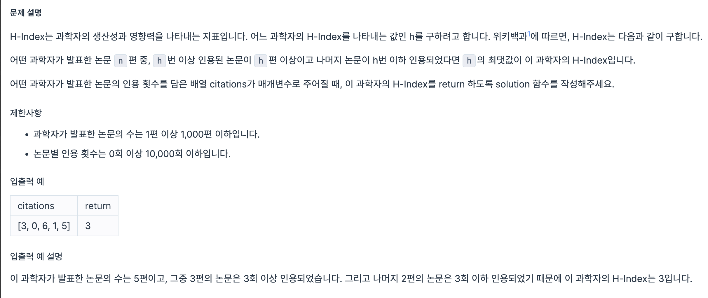 // h번 이상 인용된 논문이 h편 이상인 경우, h-index를 반환