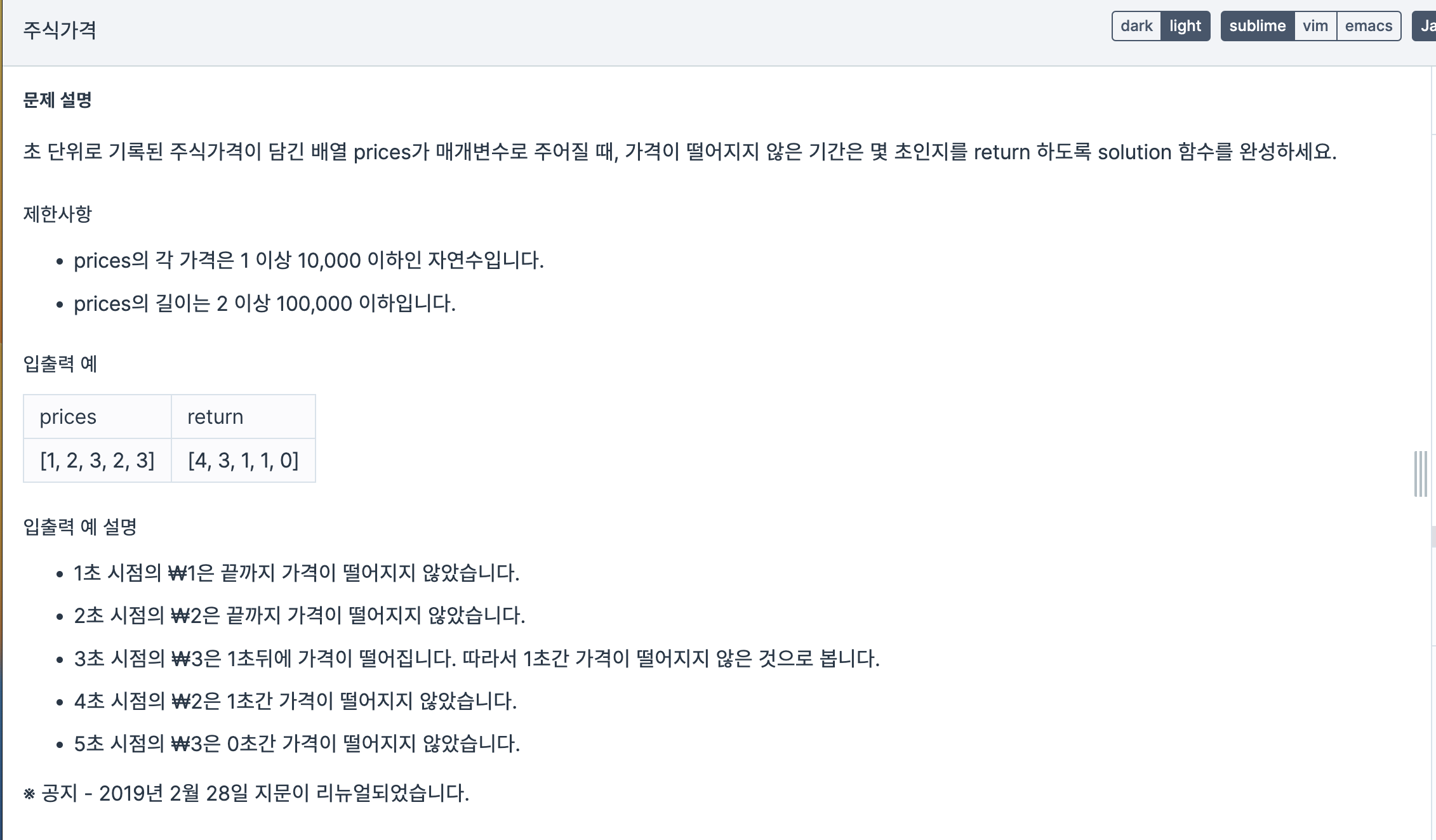 문제를 처음 보고 설명이 이게 단가? 했다. 뭔소린가했더니 첫1초 가격 1일때, 나머지 네번중에 1보다 작은가격은 없으니 떨어지지 않은것이므로 4, 2초일때 가격 2도 마찬가지로 나머지 세번중에 작은가격이 없으니 3 이런식이다. 그래서 스택으로 풀려다 큐로도 풀수 있을거같아서 큐로 풀었다.