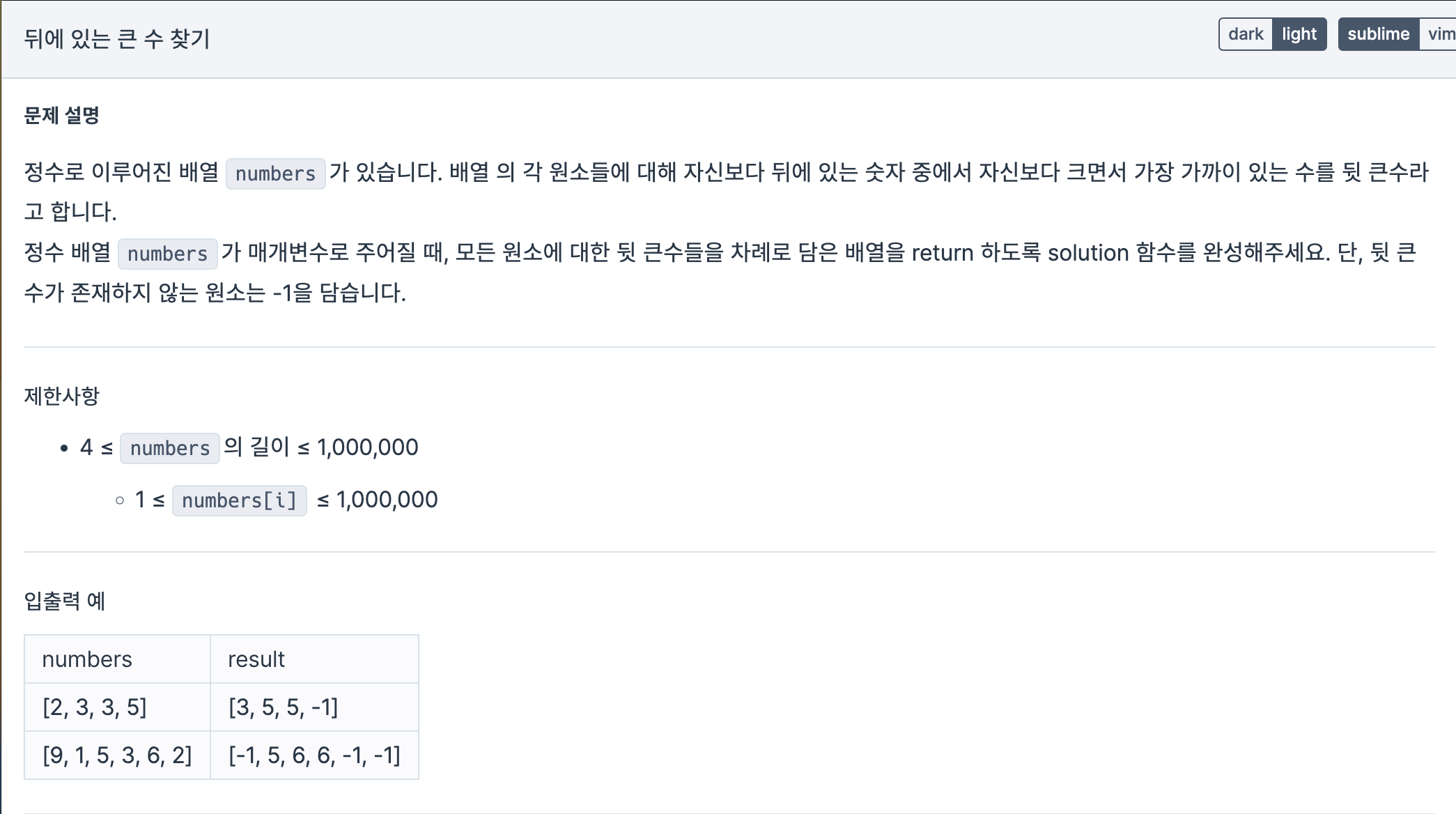 이런식으로 스택을사용하니 numbers를 뒤에서부터 비교해가면서 answer에 넣으면 된다.
