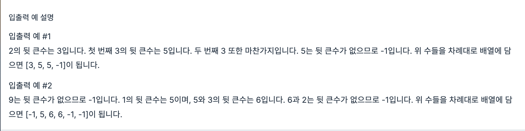 //해당 수 뒤를 순회하면서 자기보다 큰수발견하면 바로 해당인덱스에 그 수 넣기