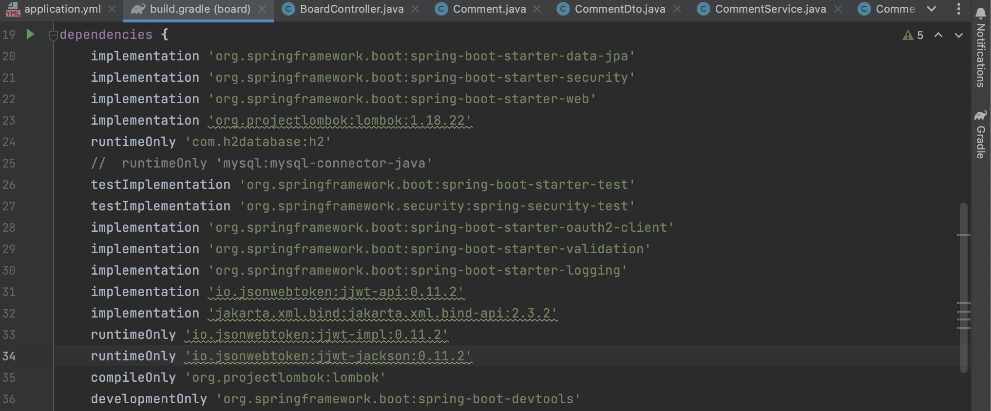 그리고 다른 종류들의 런타임온리, 디벨롭먼트온리 등등 이런것들의 종류는 어떤것들이 있고 왜쓰는지를 알아보자. 더 나아가서 아예 build.gradle의 구성을 한번 알아보자.