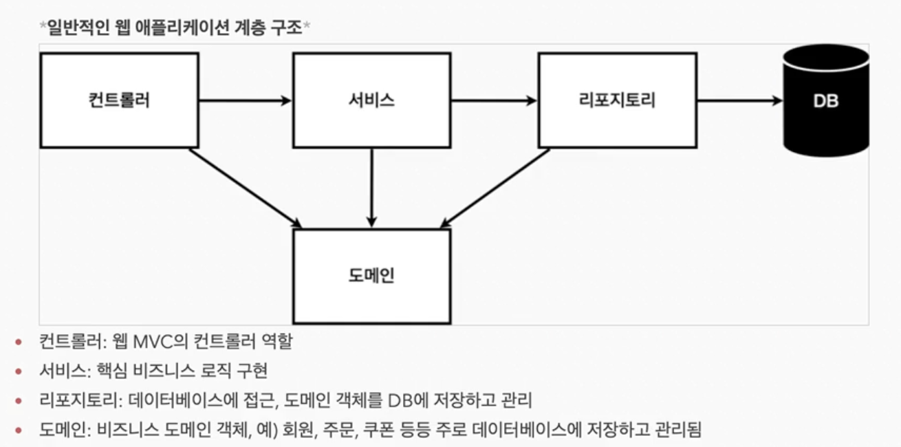 개발한 기능을 실행해서 테스트 할 때 자바의 main 메서드를 통해서 실행하거나, 웹 애플리케이션의 컨트롤러를 통해서 해당 기능을 실행함. 이런 방법은 준비하고 실행하는데 오래걸리고, 반복 실행하기 어렵고 여러 테스트를 한번에 실행하기 어렵다는 단점이 있음. 자바는 JUnit 이라는 프레임워크로 테스트를 실행해 이런 문제를 해결함. 서비스는 서비스, 레포지토리는 레포지토리 별로 테스트를 작성할 수 있다.