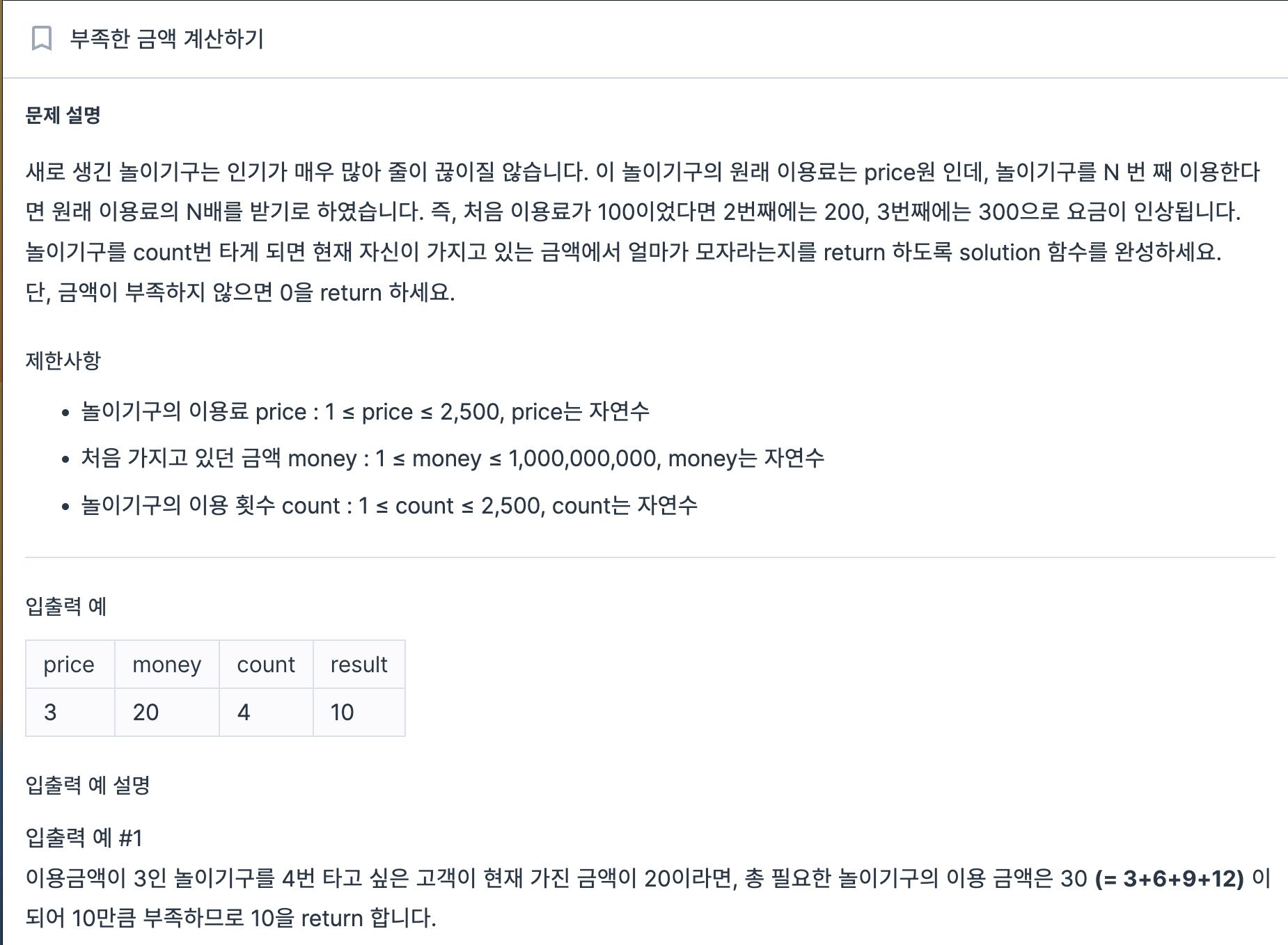 answer 에 price를 1부터 count까지 곱한걸 다 더해준다.