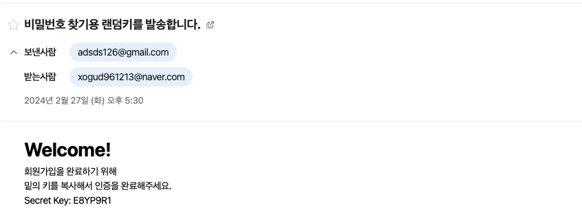 String subject = "비밀번호 찾기용 랜덤키를 발송합니다.";
