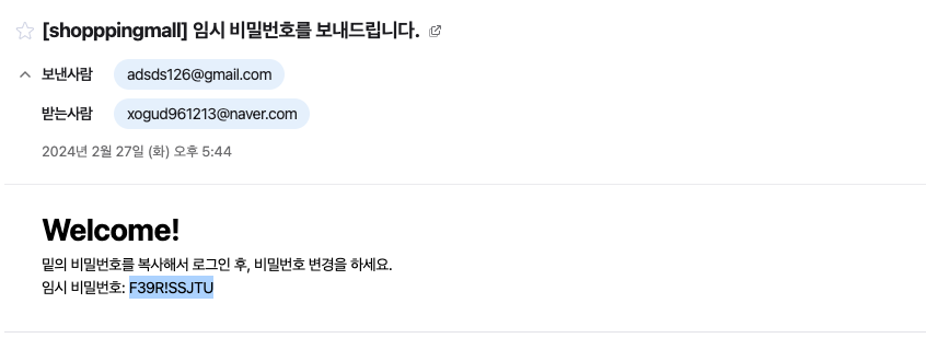String subject = "[shopppingmall] 임시 비밀번호를 보내드립니다.";