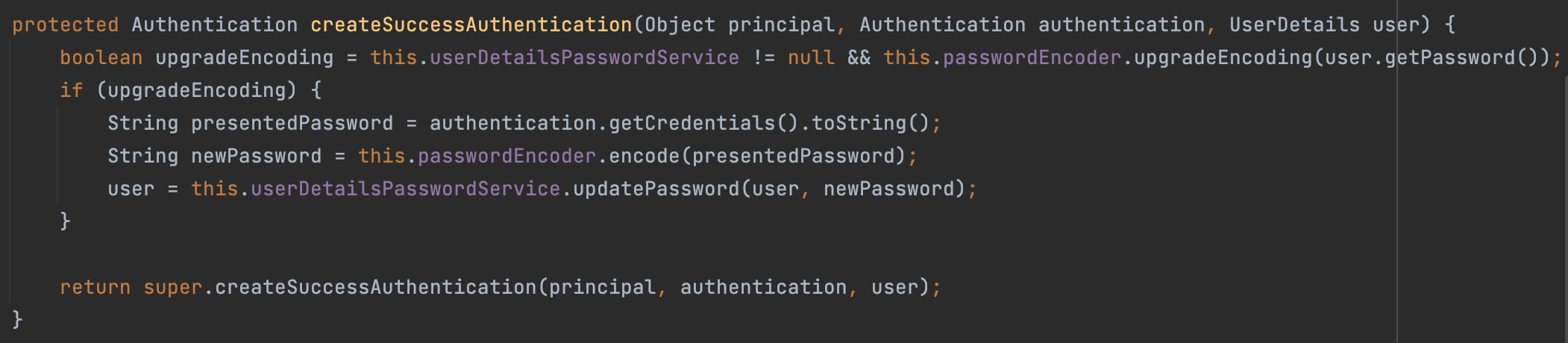 User클래스를 사용해 UserDetails를 생성할때 PasswordEncoder와 관련된 메서드를 호출하지 않는다.