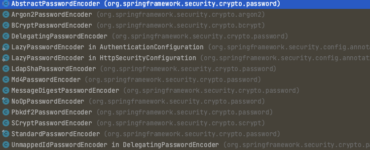 ㅇ 이 PasswordEncoder 인터페이스를 구현한 클래스들은 뭐가 있을까?