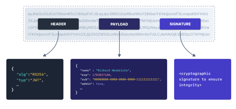 헤더랑, 페이로드, 시그니처 이 세부분으로 나뉜다. 점으로 구분이된다.