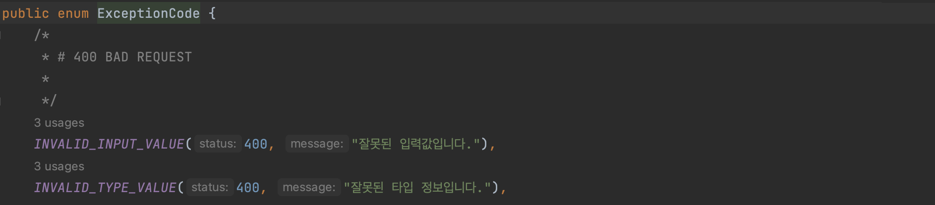 팀원분이 예외처리부분을 따로 만들어주셔서 ExceptionCode만 작성해 사용할 수 있었다.