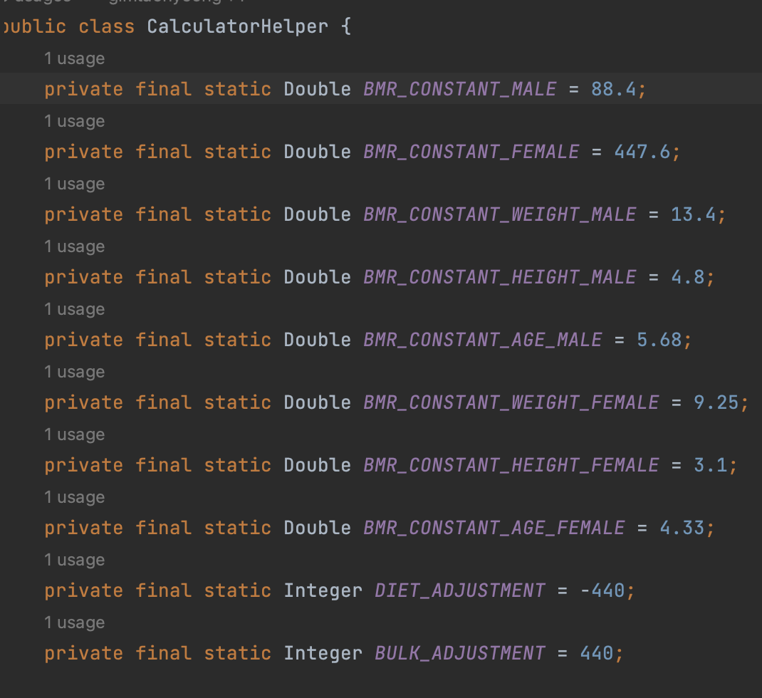사용자의 유지 칼로리 계산 메서드에 필요한 정보인 사용자의 활동 정도를 enum으로 표현했다.