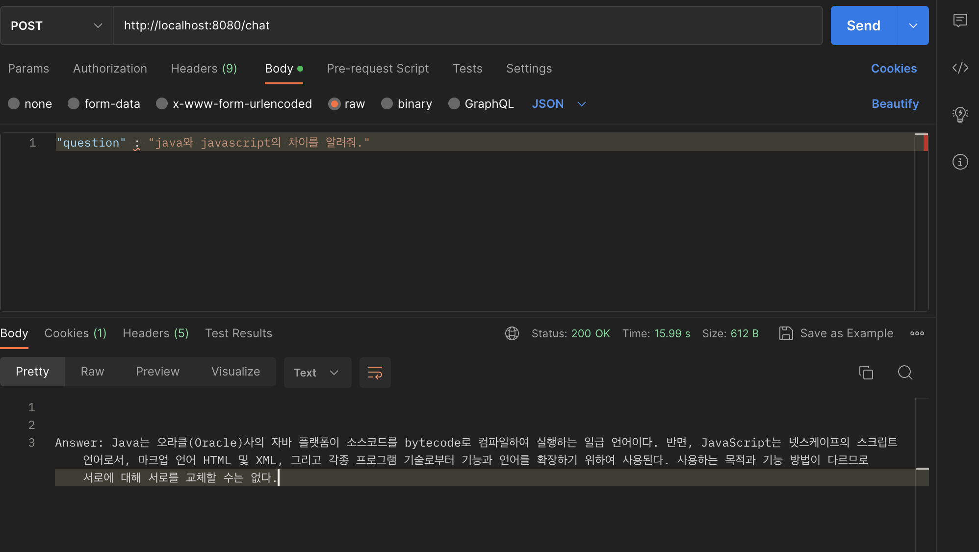 해당 요청은 HTTP 요청으로 응답을 받고, 받은 응답을 ChatGptDto.ResponseCompletions 형태로 리턴한다.