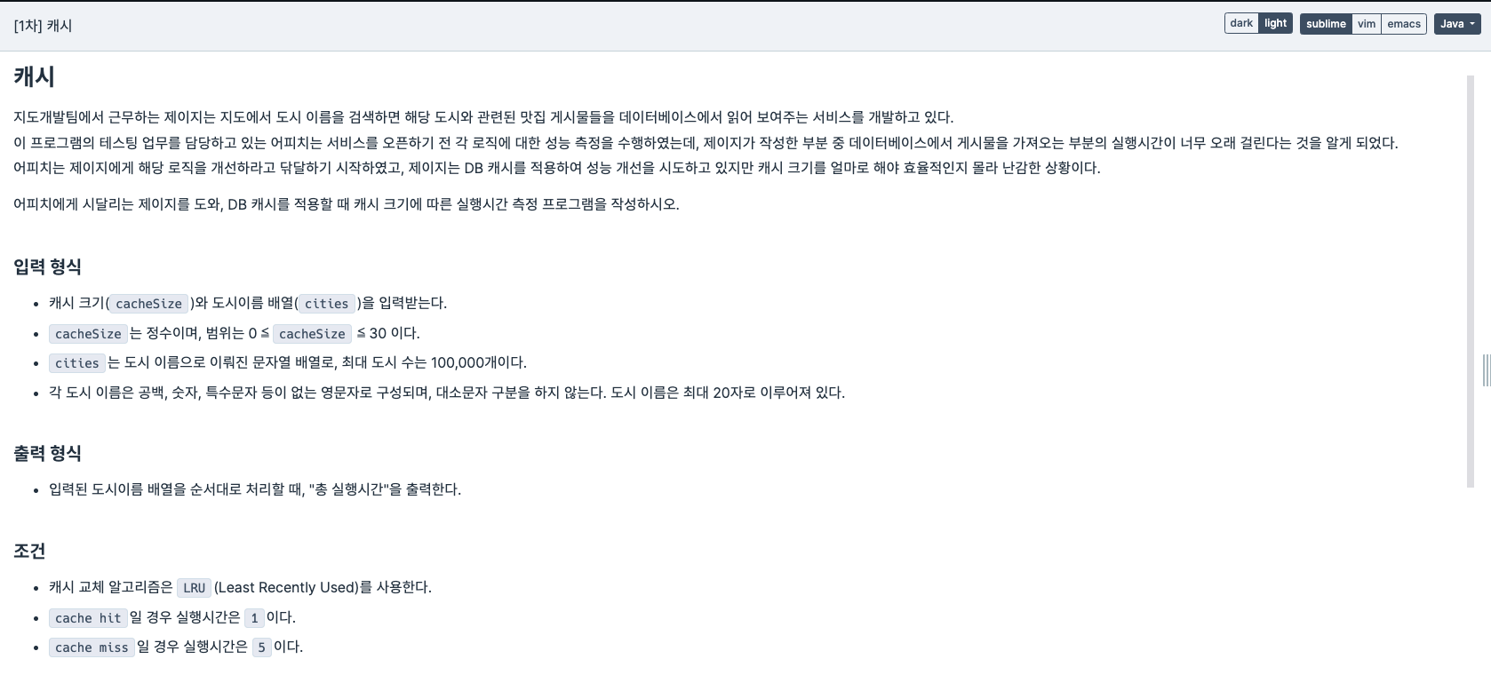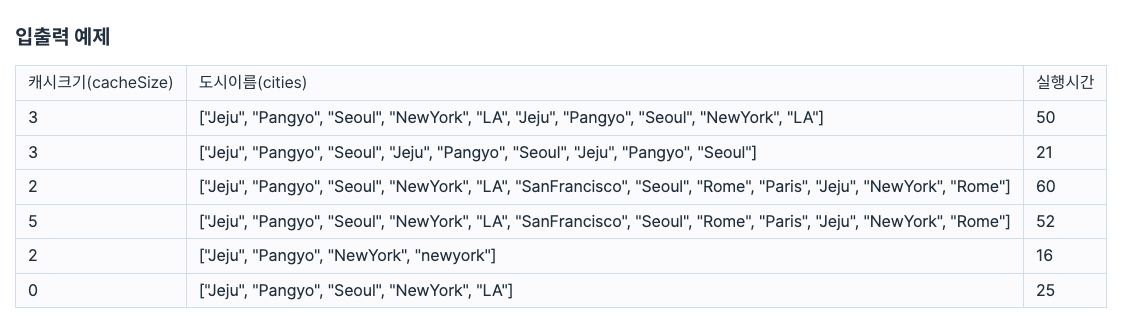 일단 캐시크기가 0인경우를 처리했고,