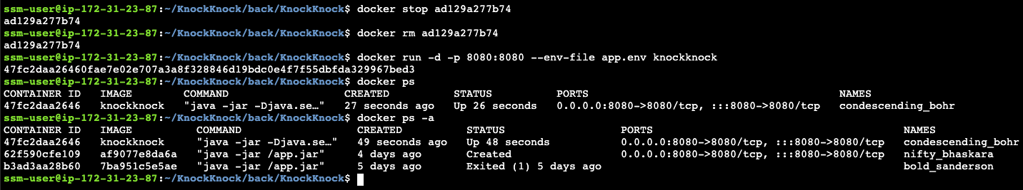 저번 포스트마지막 사진에 보면 status 가 exited가된걸 확인할 수 있다.