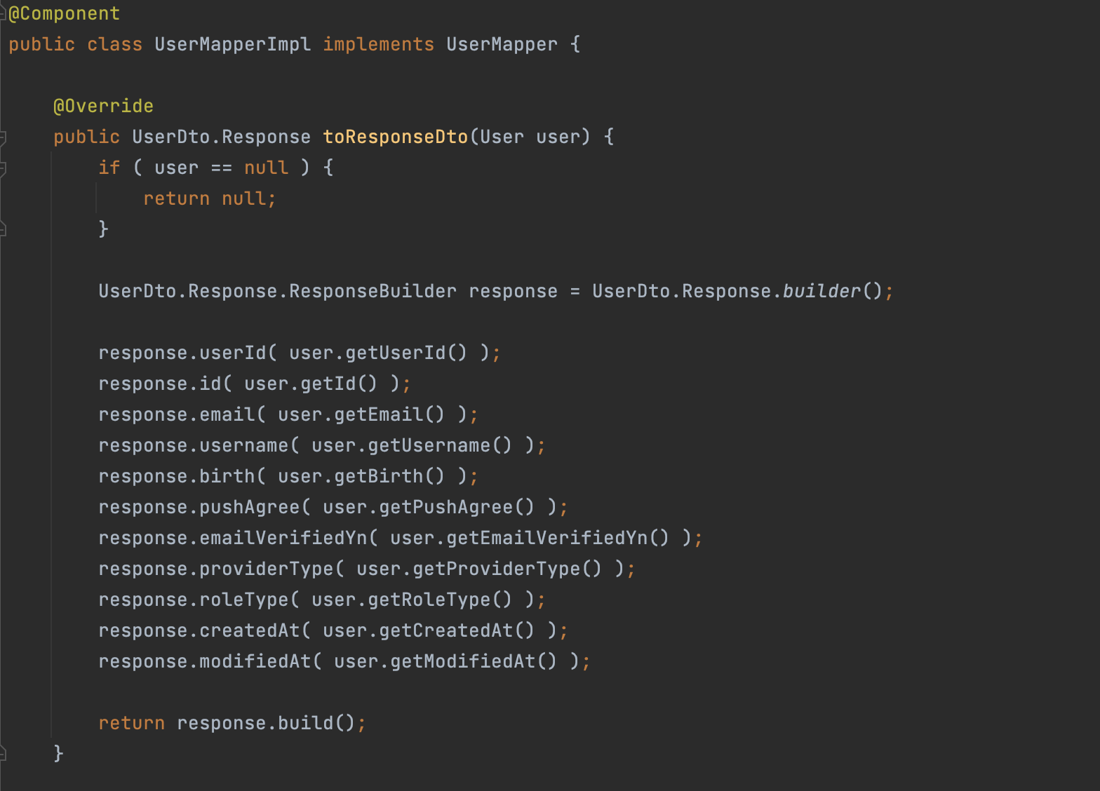 UserDto.Response response = userMapper.userToUserDtoResponse(user);