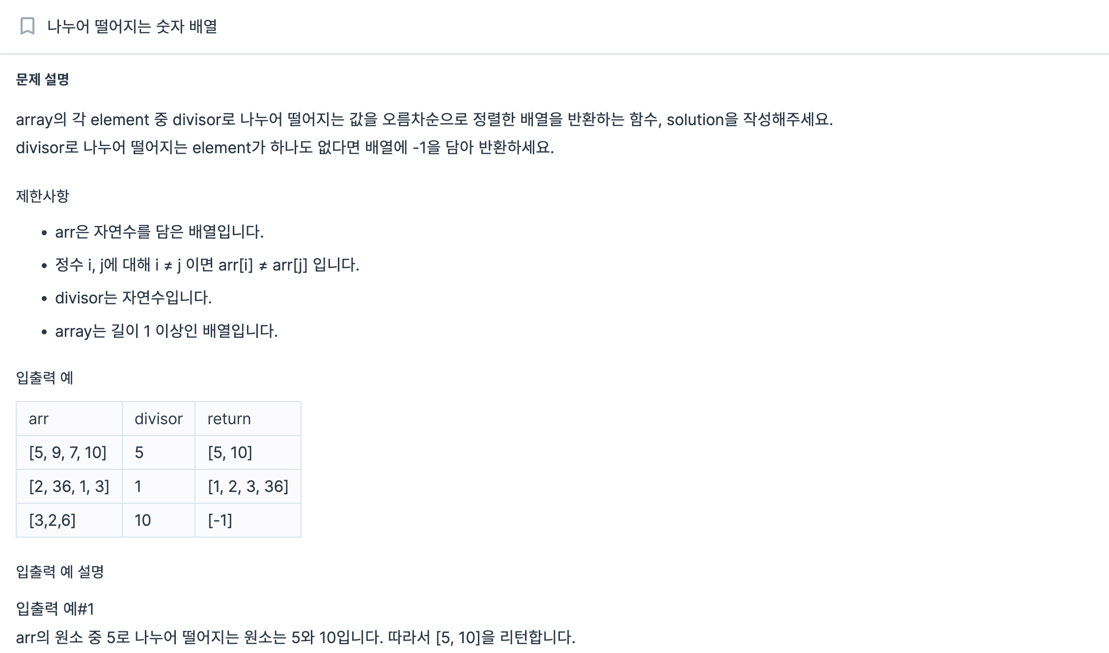 // 나누어 떨어지는 값이 있는 경우 배열에 담고 정렬하기