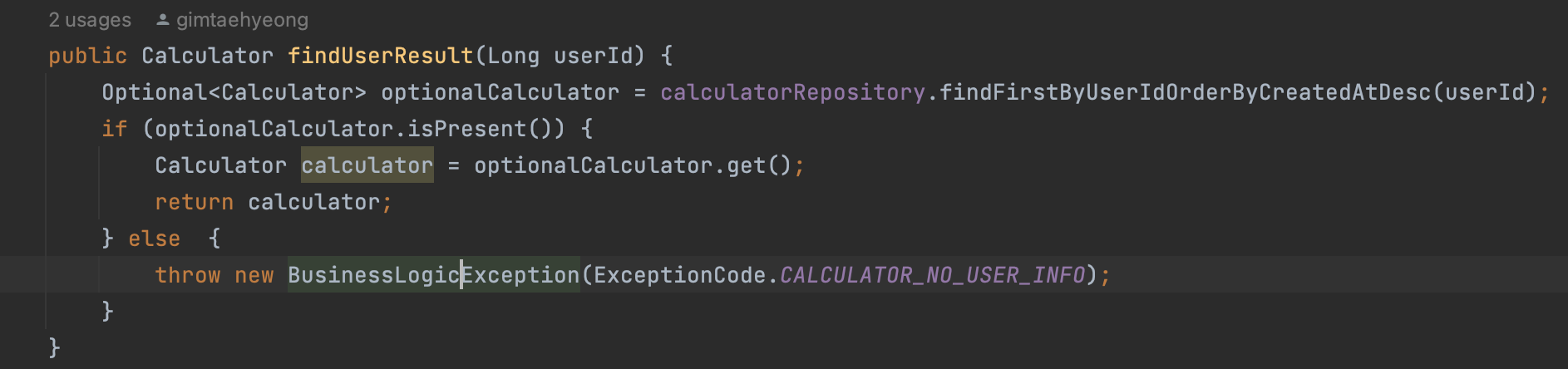 내가 실제로 예외처리를 한부분은 이렇게 했다.